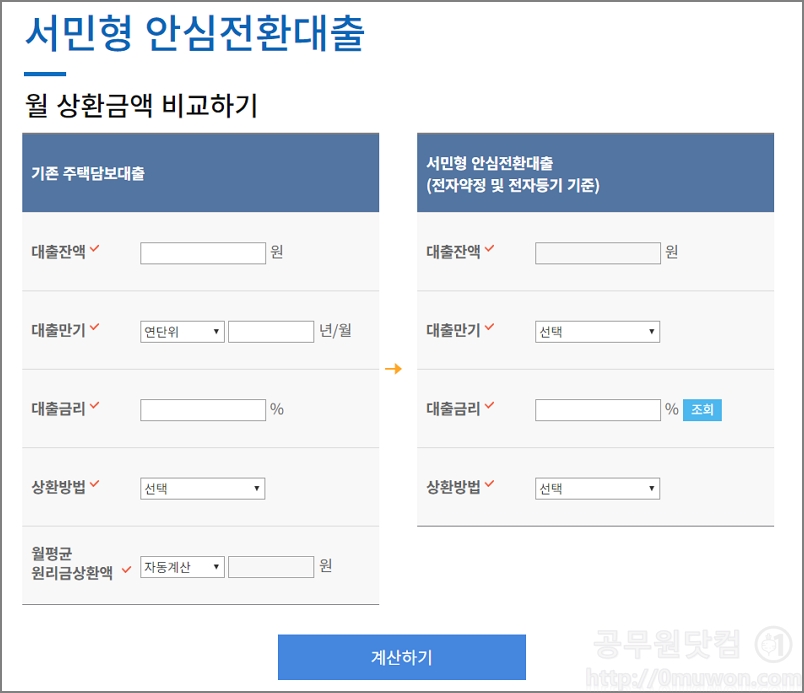 대출을 변경하기 전에 월 상환금액을 계산해 보세요. <월 상환금액 비교하기 바로가기>