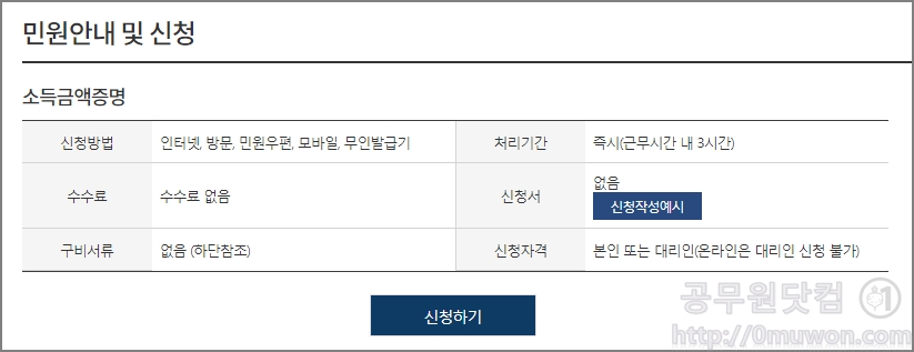 ▼ 민원안내 및 신청에서 소득금액증명 신청하기를 클릭합니다.