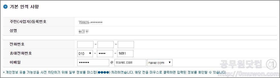 ▼ 기본인적사항을 작성합니다. 주민등록번호, 사업자등록번호, 성명을 확인합니다.