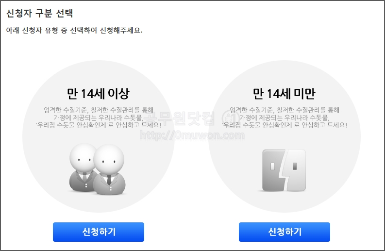 ▼ 신청자 구분을 선택합니다. 만 14세 이상, 만 14세 미만으로 구분 되어있습니다. 신청자 유형 중 선택하여 신청을 합니다.