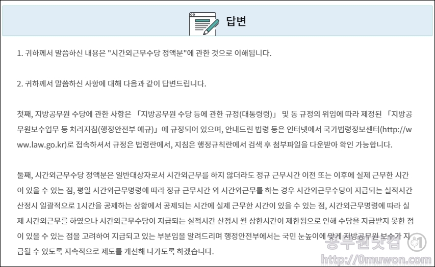 공무원은 초과근무를 하게 되면 1시간을 공제한 시간에 대해서만 시간 외 근무수당을 지급합니다.