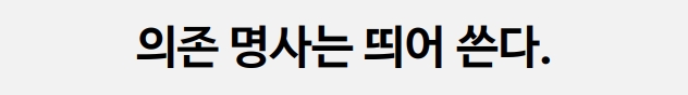 의존 명사는 띄어 씁니다. "간", "내", "‘외", "‘중", "시", "‘데", "‘바", "대로", "만큼", "뿐", "채" 등 의존명사는 앞 말과 띄어 씁니다. 의존명사는 조사와 구별하는 것이 쉽지는 않아 더 주의가 필요합니다.