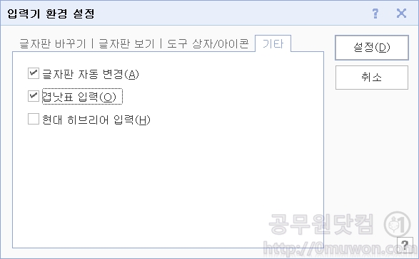 문서를 작성하다보면 겹낫표를 은근히 많이 사용을 합니다. 보통 ctrl + f10키를 눌러 문자표를 클릭 후 겹낫표를 입력합니다. 하지만, 입력기 환경 설정에서 겹낫표 입력을 체크하면 쉽고 간편하게 겹낫표를 입력할 수 있습니다.