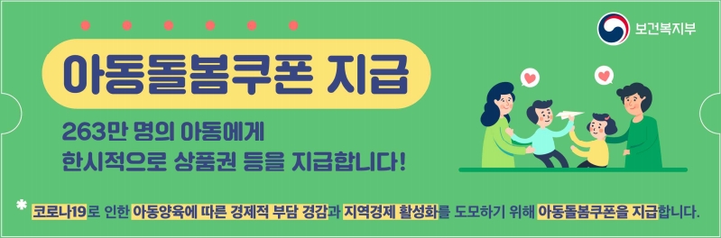 코로나19로 어려움을 겪고 있는 소상공인, 영세자영업자 등 지역 경제를 활성화하고, 아동을 양육하는 가구의 경제적 부담을 완화하기 위하여 263만 명의 아동에게 한시적으로 아동돌봄쿠폰을 지급합니다. 오늘은 아동돌봄쿠폰 지급대상, 지원내용, 지원방식, 신청방법 등에 대해서 알아보도록 하겠습니다.