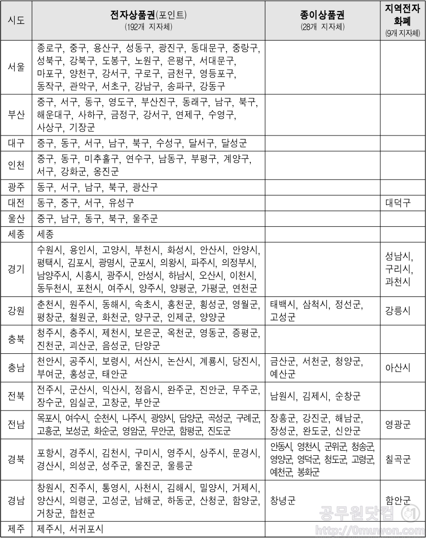 전자상품권 지급 지역, 종이상품권 지급 지역, 지역전자화폐 지급 지역을 확인해 보시기 바랍니다.