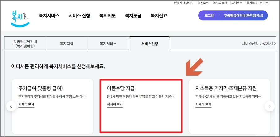 복지로 홈페이지 또는 스마트폰 앱(APP)으로 신청이 가능합니다. 온라인 신청은 아동의 보호자가 부모인 경우에만 가능하며, 그 외의 경우에는 방문 신청을 해야 합니다. 추가 제출서류는 스캔하거나 사진파일 저장 후 업로드하면 됩니다.