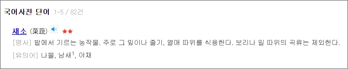 국어사전의 의미부터 알아보겠습니다. "채소"는 밭에서 기르는 농작물입니다.