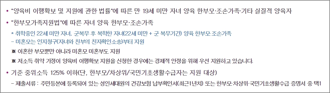 양육비 이행확보 지원서비스를 받을 수 있는 지원대상입니다.