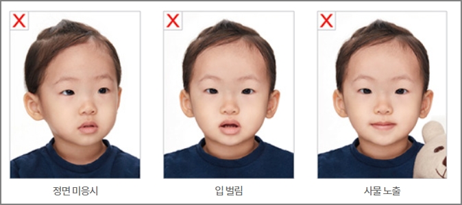영아의 여권사진도 모든 기준은 성인과 동일합니다. 장난감이나 보호자가 노출되지 않아야 합니다. 입을 다물고 촬영하기 어려운 신생아의 경우, 입을 벌려 치아가 조금 보이는 것은 가능합니다.