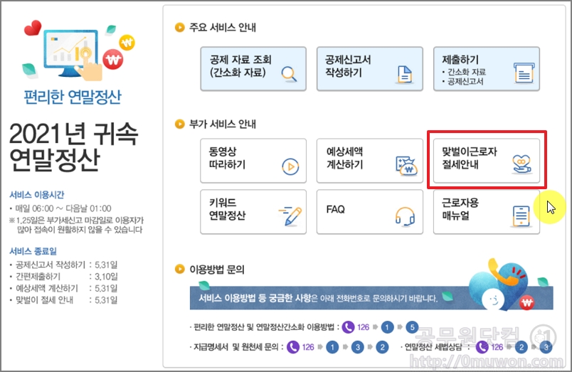 1. 편리한 연말정산 페이지에서 "맞벌이근로자 절세안내" 메뉴를 클릭합니다.