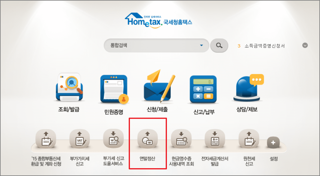 ▼ 국세청 홈택스 사이트에 접속 후 "연말정산" 메뉴를 클릭합니다. <홈택스 바로가기>