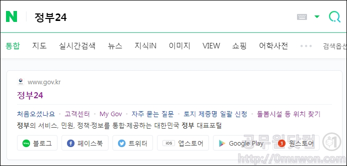 1. 정부24 사이트 방문하기. 다음, 네이버 등에서 정부24로 검색을 합니다. www.gov.kr 바로가기
