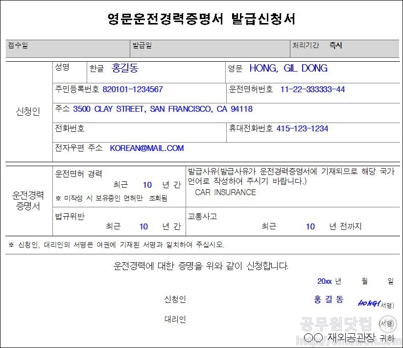 영문 운전경력증명발급에 도움이 되었기를 바랍니다.