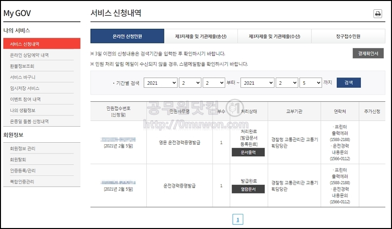 6. 영문 운전경력증명발급이 완료 되었습니다. 'Certificate of Driver's License' 가 발급되었습니다. 발급된 내용을 확인해 보세요.