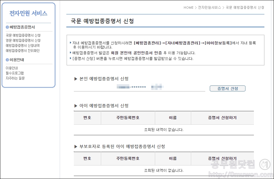 예방접종증명서 신청