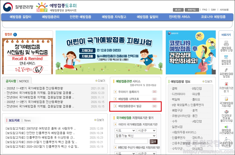예방접종증명서 발급.
