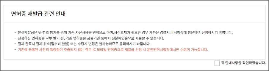 3. 면허증 재발급을 위한 약관에 동의를 합니다. 수수료도 확인이 가능합니다.