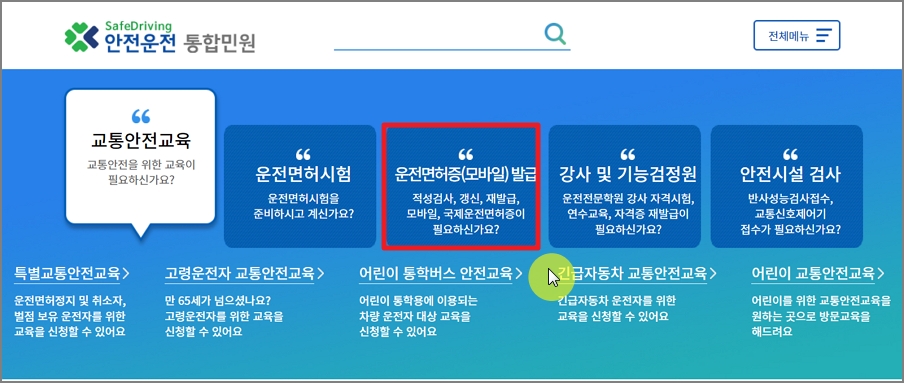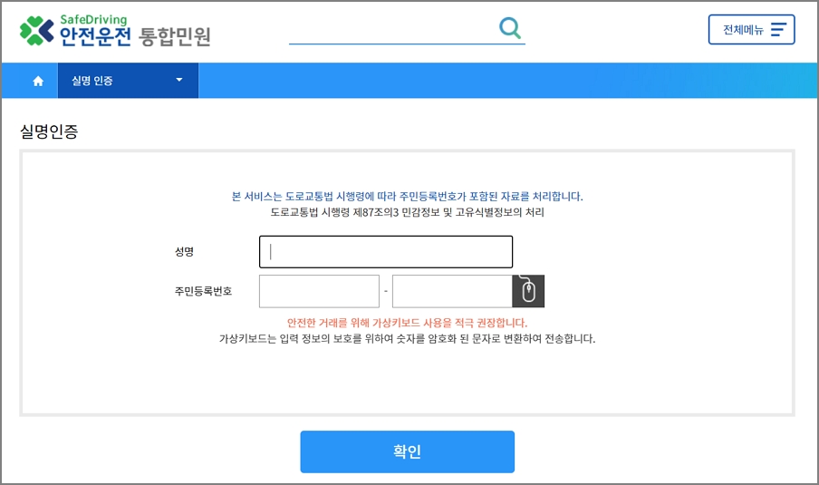 도로교통공단에서 운영하는 안전운전전 통합민원 홈페이지에 접속을 합니다. https://www.safedriving.or.kr/