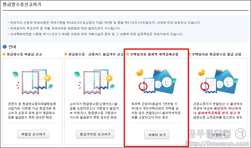 ▼ 현금영수증 민원신고에서 "주택임차료(월세)"를 클릭합니다.