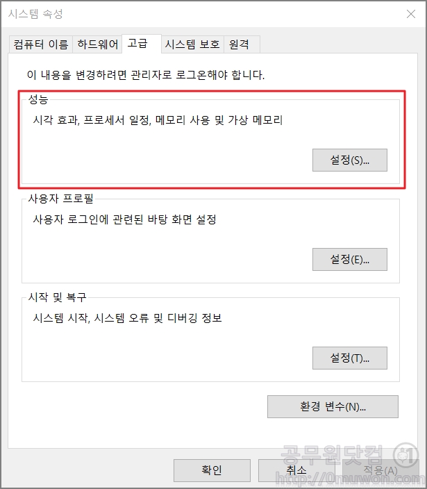 1. 고급시스템 설정