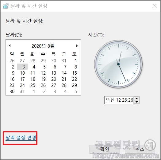 ▼ 날짜 및 시간 탭을 누른 후 "날짜 및 시간 변경(D)" 버튼을 선택합니다.