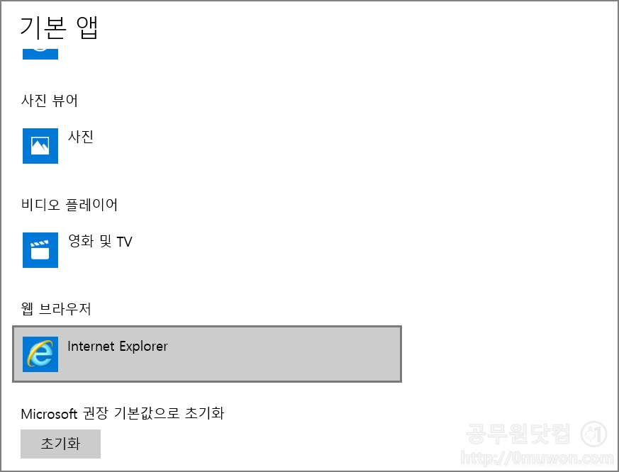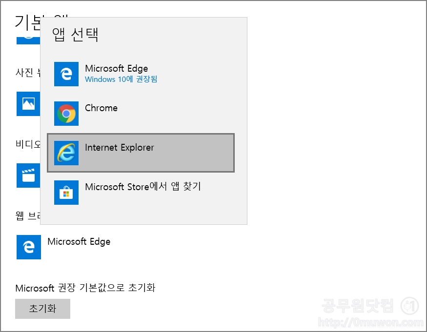 그러면 익스폴로러를 기본으로 변경하는 방법을 알아보겠습니다. 어렵지 않습니다. 천천히 따라해 보시기 바랍니다.