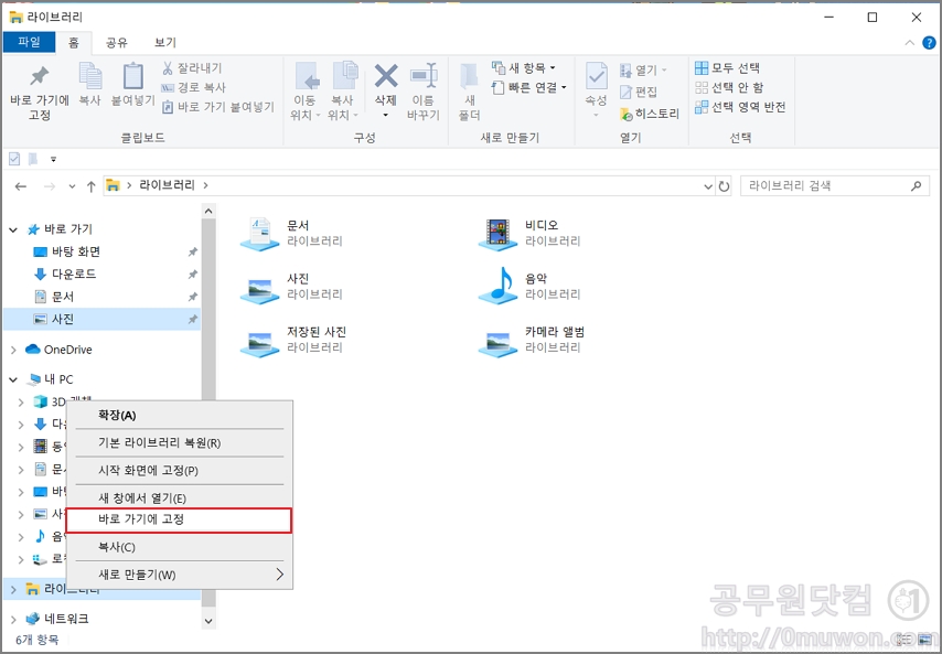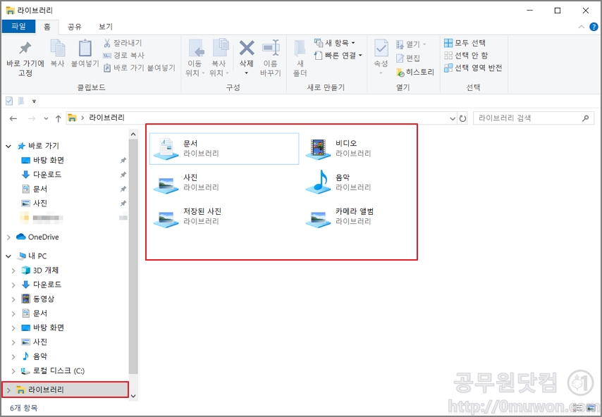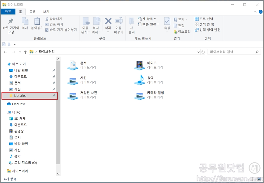 ▼ 탐색기 좌측 메뉴에 라이브러리가 표시 됩니다.
