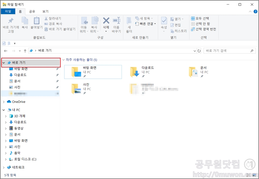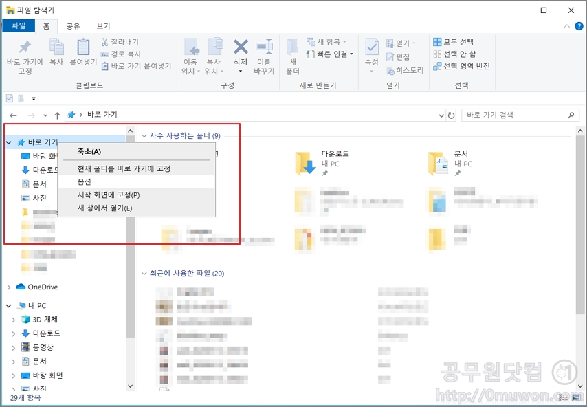 4. 자주 쓰는 파일 및 폴더 바로가기 고정하기