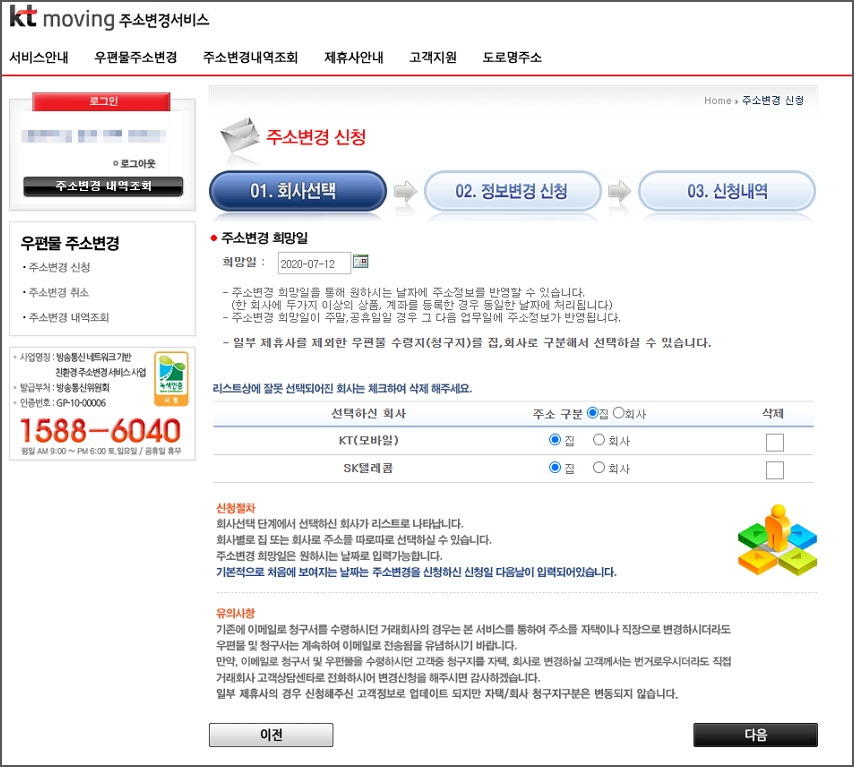 2. 주소변경서비스 KT무빙
