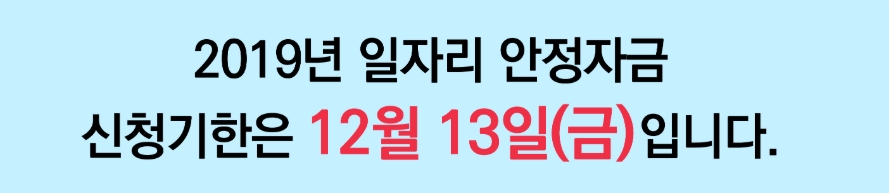 일자리 안정자금은 신청마감일이 있습니다. 기한 내에 꼭 신청을 하셔야 합니다. 2019년도 일자리 안정자금 신규 신청 마감일은 2019년 12월 13일(금요일) 입니다. 신청마감일 당일에는 신청폭주로 인하여 접속이 안될 수도 있습니다. 그러니 미리미리 신청을 하시기 바랍니다.