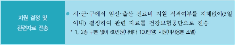 3. 진료비 지원 적격여부를 3일 이내 결정하여 관련 자료를 건강보험공단으로 전송합니다.