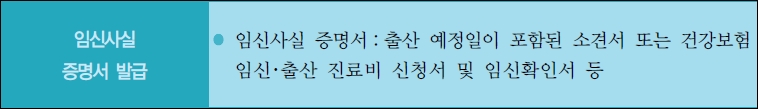 1. 임신사실 증명서를 발급 받습니다. 임신사실 증명서는 출산 예정일이 포함된 소견서 또는 건강보험 임신 출산 진료비 신청서 및 임신확인서 등을 말합니다.