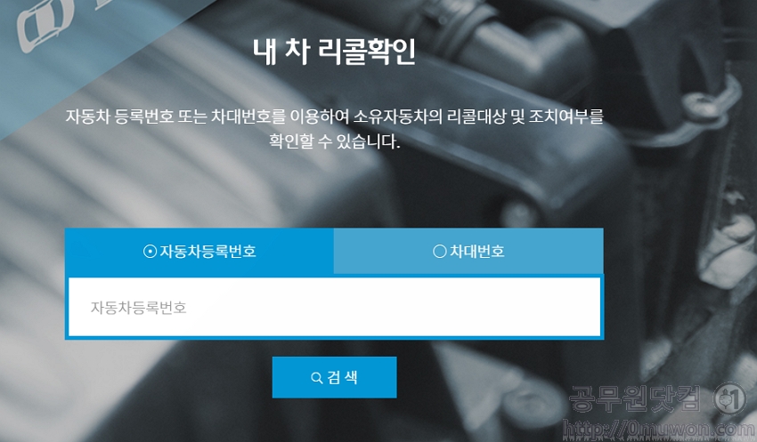 자동차 리콜대상 확인 방법은 정말 간단합니다. 리콜센터 홈페이지에서 자동차 등록번호를 입력 후 검색 버튼을 클릭합니다.