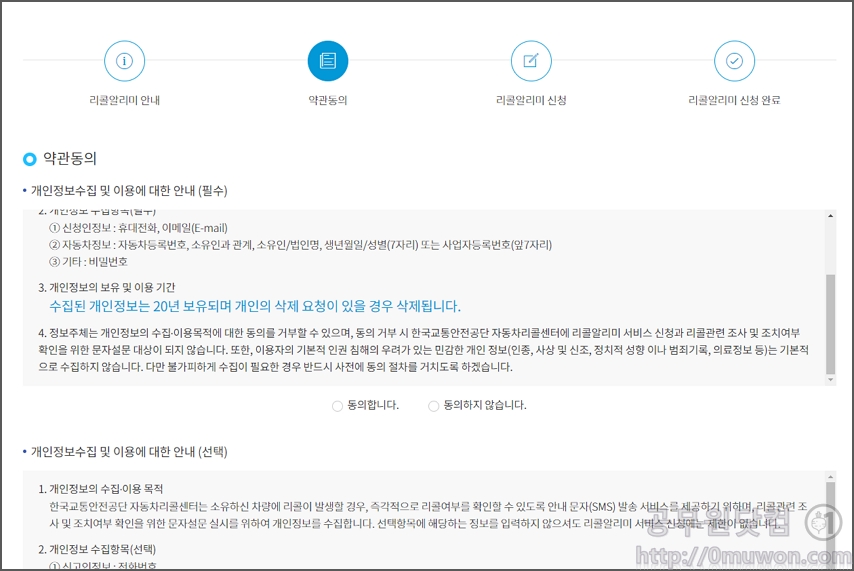 필수항목은 동의합니다에 체크를 합니다. 선택항목은 꼭 동의하지 않으셔도 됩니다. 동의하지 않는 경우 동의하지 않습니다에 체크를 하면 됩니다.