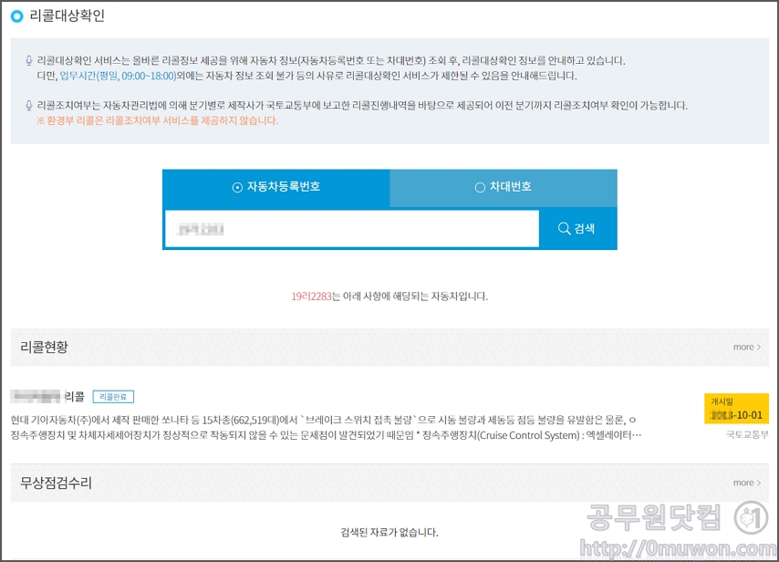 온라인으로 자동차 리콜 대상확인뿐만 아니라 리콜 여부까지 확인이 가능합니다.