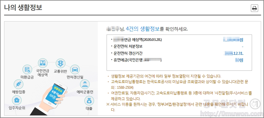 1. 정부24 나의 생활정보