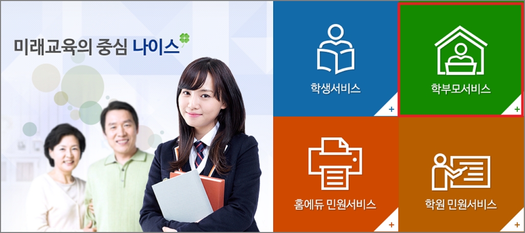 1. 나이스 홈페이지 접속 후 '학보모서비스'를 클릭합니다. <▼나이스 홈페이지 바로가기>