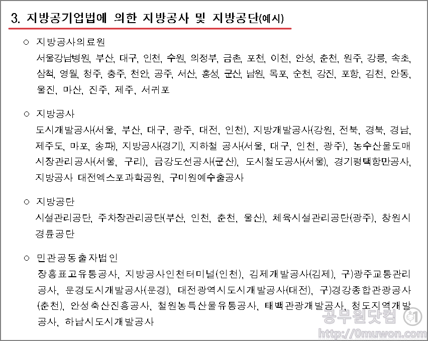 지방공사 및 지방공단에 해당되는지 확인해보시기 바랍니다.
