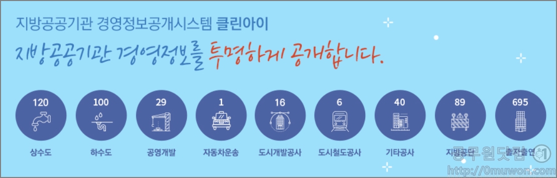 클린아이는 지방공공기관 경영정보 공개시스템입니다. 클린아이에서 지방공공기관 경영정보를 투명하게 공개하고 있습니다.