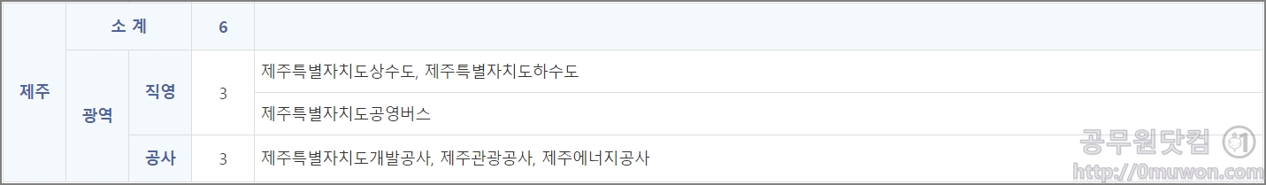 제주특별자치도상수도, 제주특별자치도하수도 제주특별자치도공영버스, 제주특별자치도개발공사, 제주관광공사, 제주에너지공사
