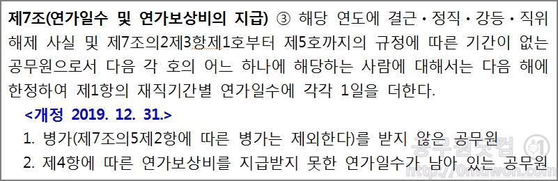 2. 지방공무원 연가일수 가산 (2019년 12월 31일 개정)