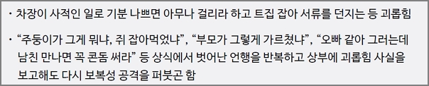 11. 신체적인 위협이나 폭력을 가함 욕설이나 위협적인 말을 한다.