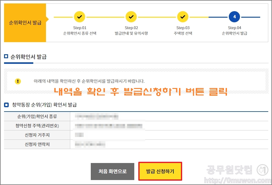 ▼ 내역을 확인 후 순위확인서를 발급받으면 됩니다.