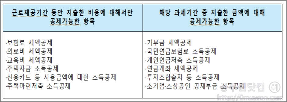 1. 근로기간 동안 지출한 비용만 공제가능