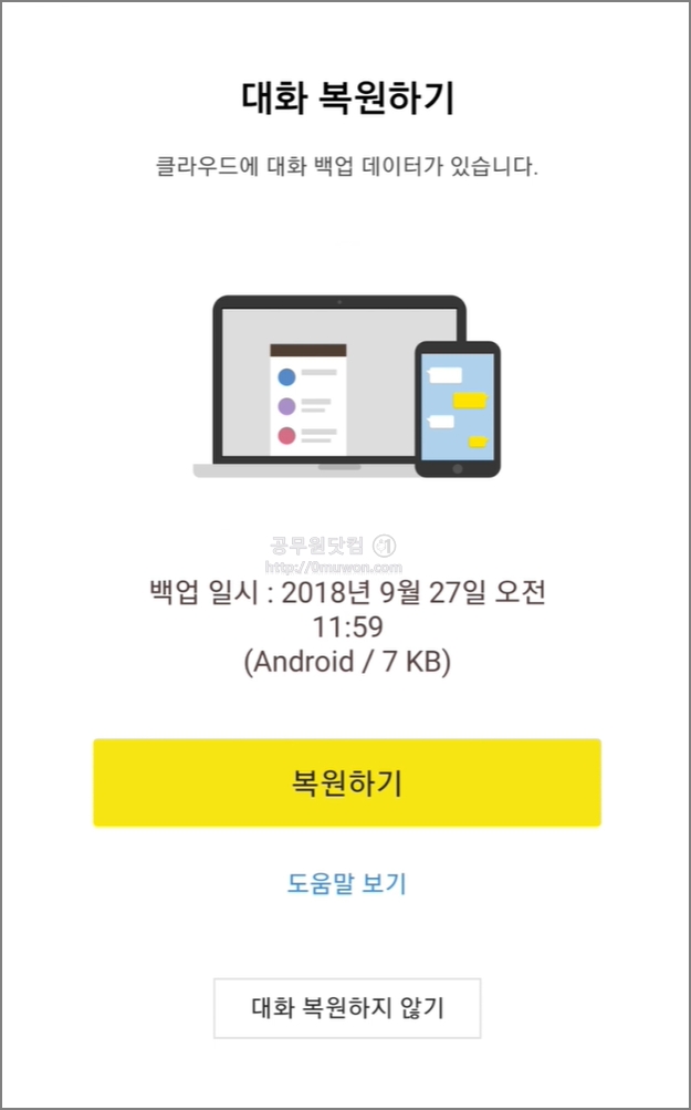 카카오톡 대화 내용 백업, 복원하는 방법을 알아보았습니다. 중요한 대화내용 저장하세요.