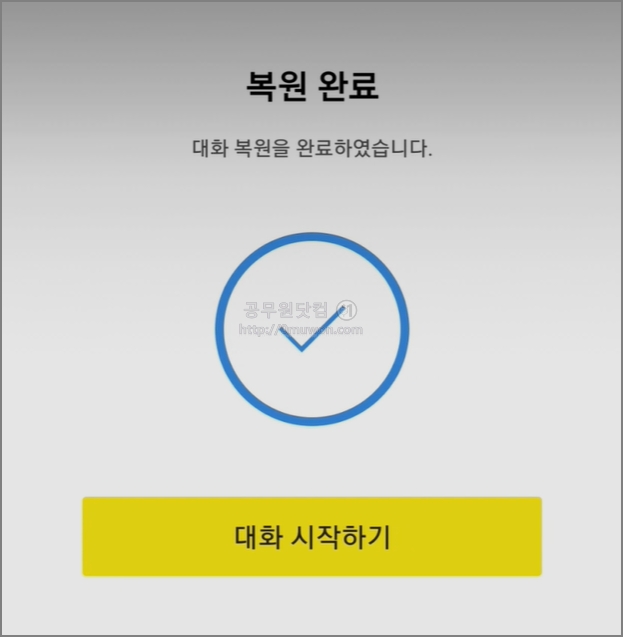 6. '대화 시작하기'를 누르면 복원완료가 됩니다.