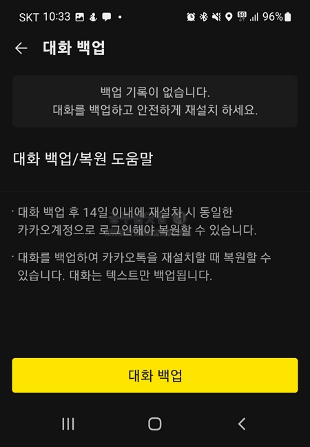 1. 사전에 카카오톡 앱을 통해 대화를 백업하지 않은 경우