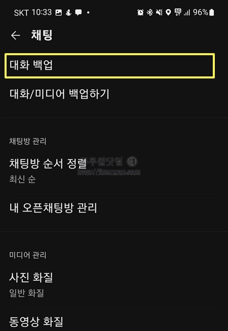 4. 대화 백업, 복원 도움말을 꼭 읽어보세요. 하단의 '대화 백업' 버튼을 선택합니다.
