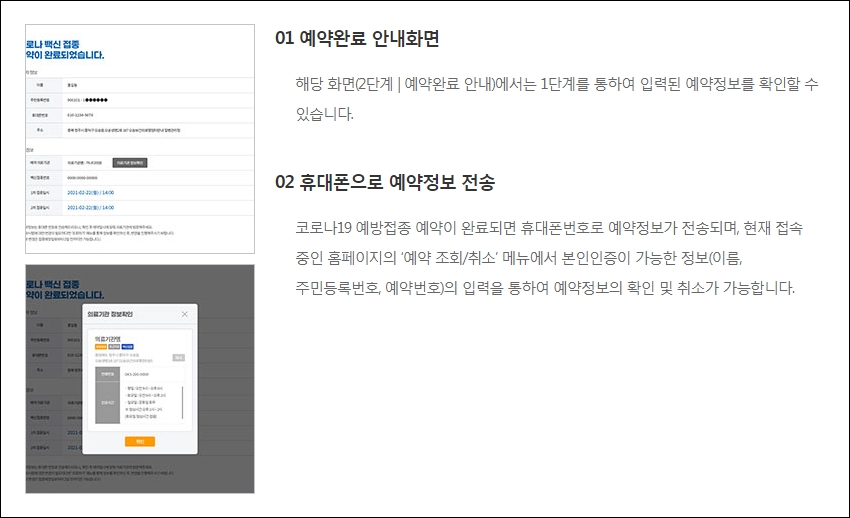 2. 코로나19 예방접종 예약이 완료되면 휴대폰번호로 예약정보가 전송이 됩니다. '예약조회/취소' 메뉴에서 예약정보의 확인 및 취소가 가능합니다.