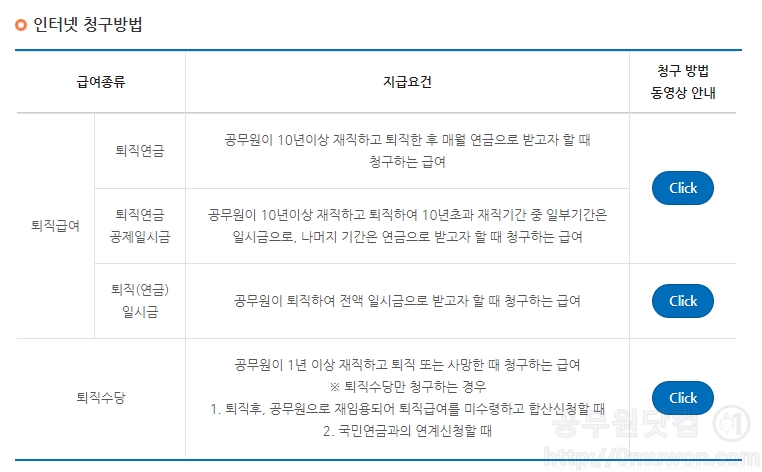 정년퇴직 또는 명예퇴직 공무원분들은 퇴직급여 및 퇴직수당을 퇴직일 전에 사전 청구가 가능합니다. 사전 청구를 하게되면 퇴직일 이후 신속하게 급여가 지급이 됩니다. 정년퇴직 또는 명예퇴직하는 분들은 참고하시기 바랍니다. 공무원연금 공단에서는 퇴직예정자 분들을 위해 설명회 등도 개최하고 있으니, 설명회를 참석하는 것도 좋습니다. 오늘은 퇴직예정 공무원 급여 사전 청구하는 법을 알아보도록 하겠습니다.